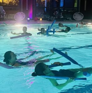 Depuis le mois d’octobre, j’ai donc la joie d’animer des séances collectives de 30 minutes lors des Soirées ZEN organisées dans différentes piscines du 93 à Romainville et au Pré Saint-Gervais.